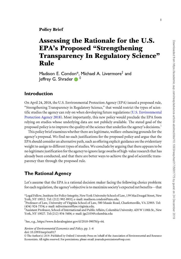 The U.S. Environmental Protection Agency (EPA) is considering a new policy that would prohibit the agency from issuing regulations that rely on studies whose underlying data are not publicly available. While the EPA claims it is pursuing this policy in the interest of transparency, we argue that such a prohibition would greatly hinder, rather than help, the rulemaking process and would likely result in undesirable regulatory outcomes that fail to maximize economic welfare.